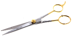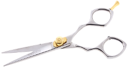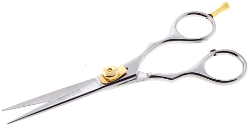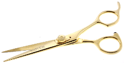 | Description : Barber Scissors, Super Cut, Mirror Finish with Gold Ring Material : Japanese Stainless Steel, Rust Free. Model:SC119 |