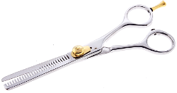 | Description : Thinning Scissors with 30 teeth Gold Finish. Size 6.5" Material :Japanese Stainless Steel, Rust Free Model:SC113 |